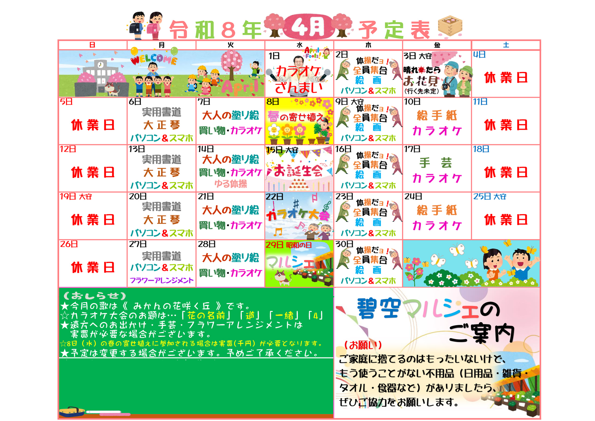 • 4月の予定表